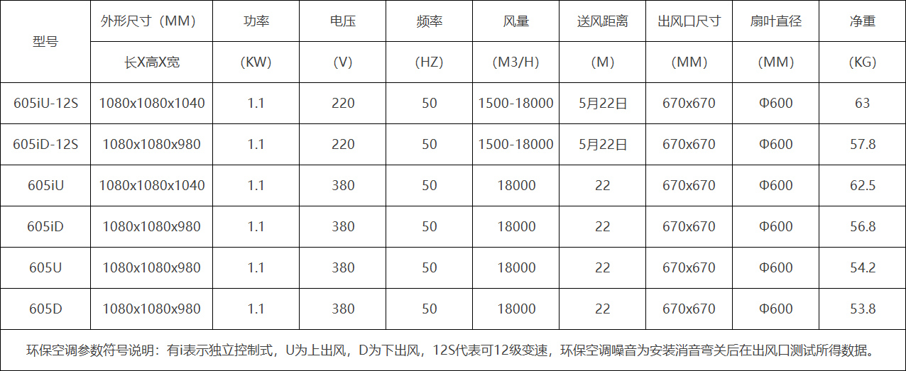 独立式上出风环保空调产品特点(型号:605iU):